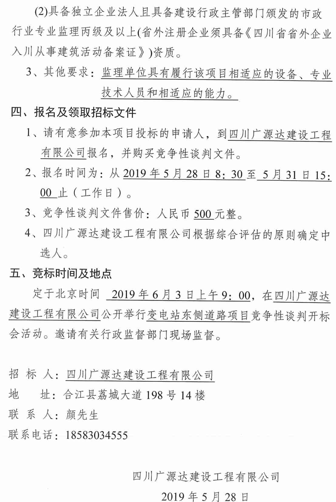 變電站東側(cè)道路項目(監(jiān)理)競爭性談判公告