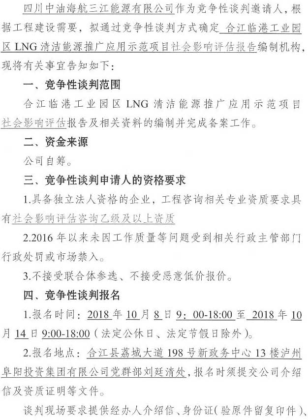 合江臨港工業(yè)園區(qū)LNG清潔能源推廣應(yīng)用示范項(xiàng)目社會影響評估單位競爭性談判公告.docx