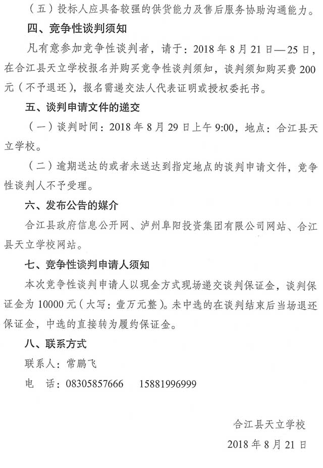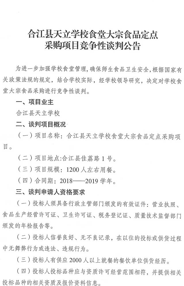 競爭性談判公告:合江縣天立學(xué)校食堂大宗食品定點采購項目競爭性談判公告